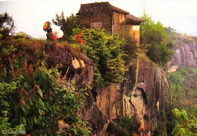 鱼木寨,四周皆是绝壁,悬崖如削,铁壁三层,螺峰四座,仅有一条2米宽的石板古道直通寨门,堪称天险。