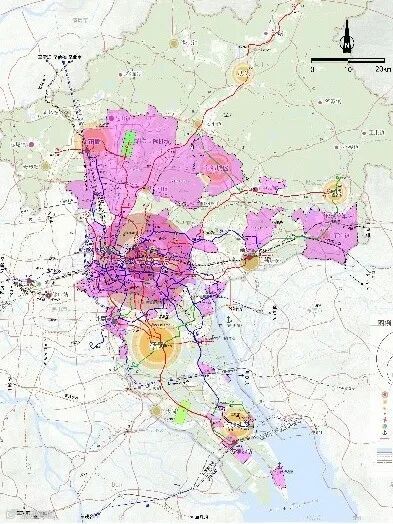 (1)在网络规划层面,首创与“多规合一”融合的城市轨道交通线网规划技术,全面分析研究了城市轨道交通线网架构、城市轨道交通客运设施一体化、城市轨道交通配套设施资源共享等问题,规划形成与“多规合一”融合,国铁、城际、地铁等多网无缝衔接的城市轨道交通线网,满足客流需求,减少征地拆迁,实现土地集约利用和资源共享。