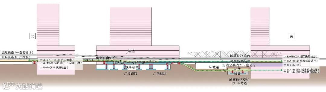 (3)在车站设计层面,首创节能环保的轨道车站综合设计技术,通过统计分析广州地铁客流大数据,实施列车车厢跟车调查、车站客运设施能力和服务水平调查,研究了轨道交通客流特性,分析了列车车厢站立密度,乘客在站台上的分布规律和候车规律,构建大型换乘车站服务水平和客流流线设计综合技术。并以广义换乘时间为综合指标,建立换乘系统设计模型,创建基于广义时间的轨道枢纽换乘系统设计技术。集成新型环控技术、集中供冷技术和暗挖车站新型空调技术,构建轨道交通车站环境控制设计技术。同时,对以上技术进行集成创新,形成新型轨道车站综合设计技术方案,有效提高车站的换乘效率,从根本上改变轨道车站的环控系统模式,降低输送能耗和污染源,实现综合节能减排的目标。