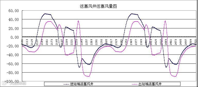 某车站进出站端活塞风井内的模拟计算瞬时风量