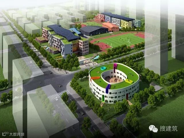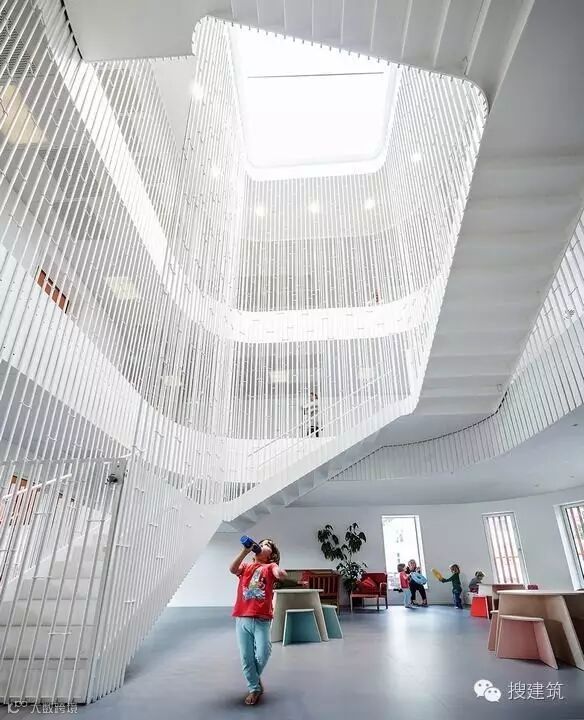 该幼儿园设施集中在年轻人,安全与保护结合流体,弯曲的形状,这几乎完全消除尖锐的直角的方案。