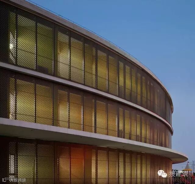 主建筑以西北及东南外墙为主要建筑立面,采用U型玻璃、PC阳光板与多孔板,综合考虑建筑效果及成本控制。