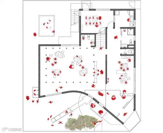 设计团队能够利用宽松的规划条例为了完成项目,而非传统的空间组织特征。建立一个好的连接和开放的环境,没有内部的走廊,占地面积1000平方米的布置围绕一个中央体连接的设计各个领域。这个帐篷状结构是封闭的聚碳酸酯的天花板,让光线进入建筑的内部。