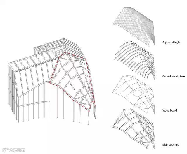 至于该建筑,我们使用了木材,在那里他们可以感觉到温暖。这一点,他们可以感觉到内部和外部的不同。