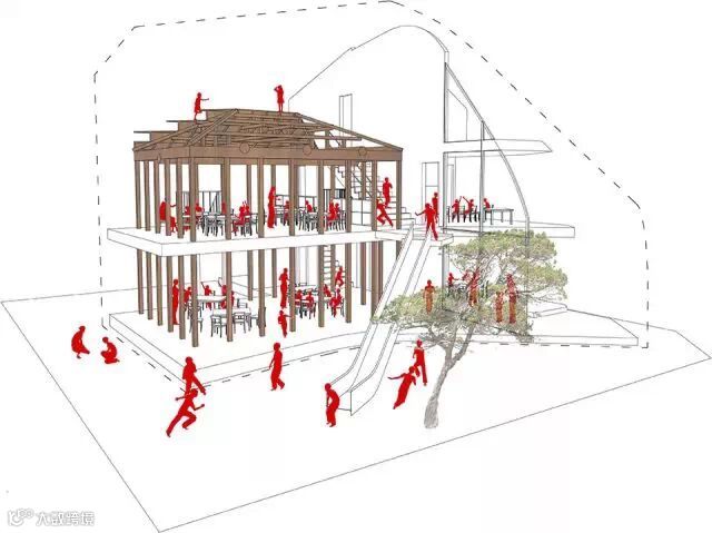 以下策略是由建筑师来实现设计意图。通过模糊的边界和面临的主要街道大开口创造,社区是能够在视觉上和空间连接在幼儿园发生的活动。户外活动景观和设施都融入到景观设计,作为操场,教育空间,所有的育儿空间同时允许这些活动的“溢出”和“蔓延”到附近。