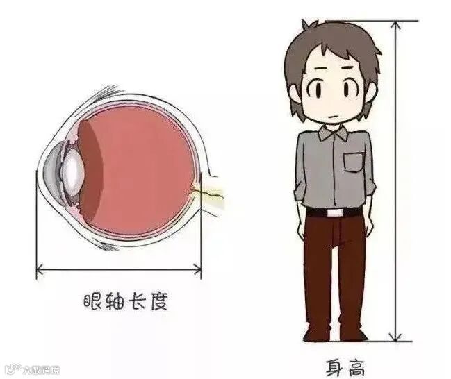 我们的眼球是一个近似球体,从前面的角膜到眼底的视网膜的距离,被称为眼轴长度。眼轴通常随年龄增长逐步增大,成年人正常范围约为24mm。和我们的身高一样,眼轴不是生来就固定不变的,而是随着年龄增长,慢慢生长发育变长的,一般成年后就基本稳定了。