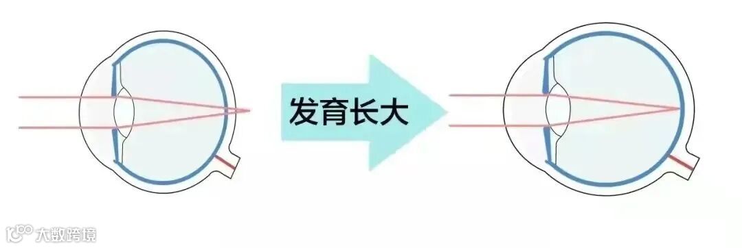 婴幼儿的眼轴短,光线进入眼睛后会聚集在视网膜后面,所以婴幼儿都是远视眼,我们也称之为远视储备,随着生长,眼轴慢慢变长,远视度数减低变为正视,这是眼睛发育的必经过程。