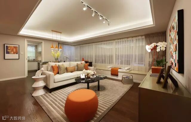 一个长达近8米,270度转角的全明采光飘窗,使得室外的风景与室内空间之间的互动,达到了高度和谐。