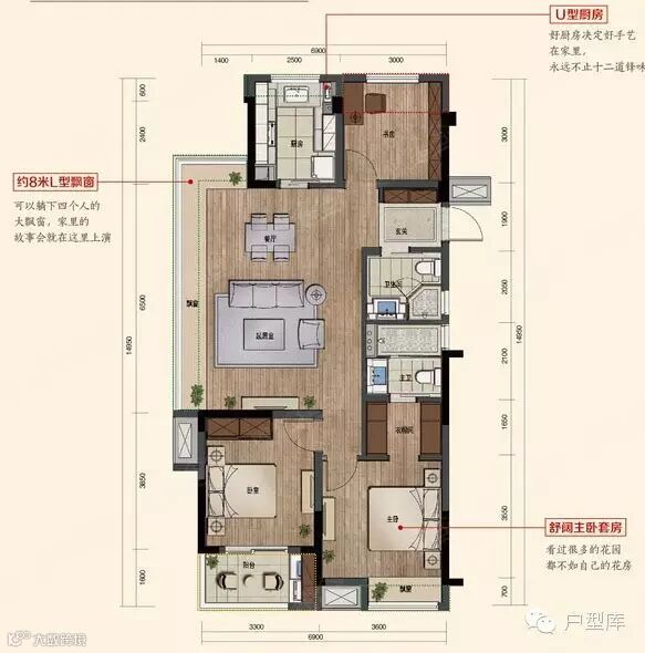 几乎每一个空间都不输,在核心居住空间(厨房、主卫、主卧、次卧)实现逆袭反超,原来是大户型产品才能配置的U型厨房,被广泛应用在杭宸89方及以上户型中;108方客厅采光面长度,在同类产品中夺目生辉;108方户型拥有的约40㎡客餐厅,如果愿意的话这里可以支开全场麻将桌。