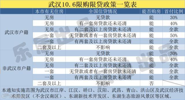 三、在武汉市拥有1套住房的本市户籍居民家庭在上述区域购买第二套住房申请商业性个人住房的,最低首付款比例为50%。在武汉市拥有1套及以上住房的非武汉市户籍居民家庭,在上述区域购买住房的,暂停发放商业性个人住房贷款。