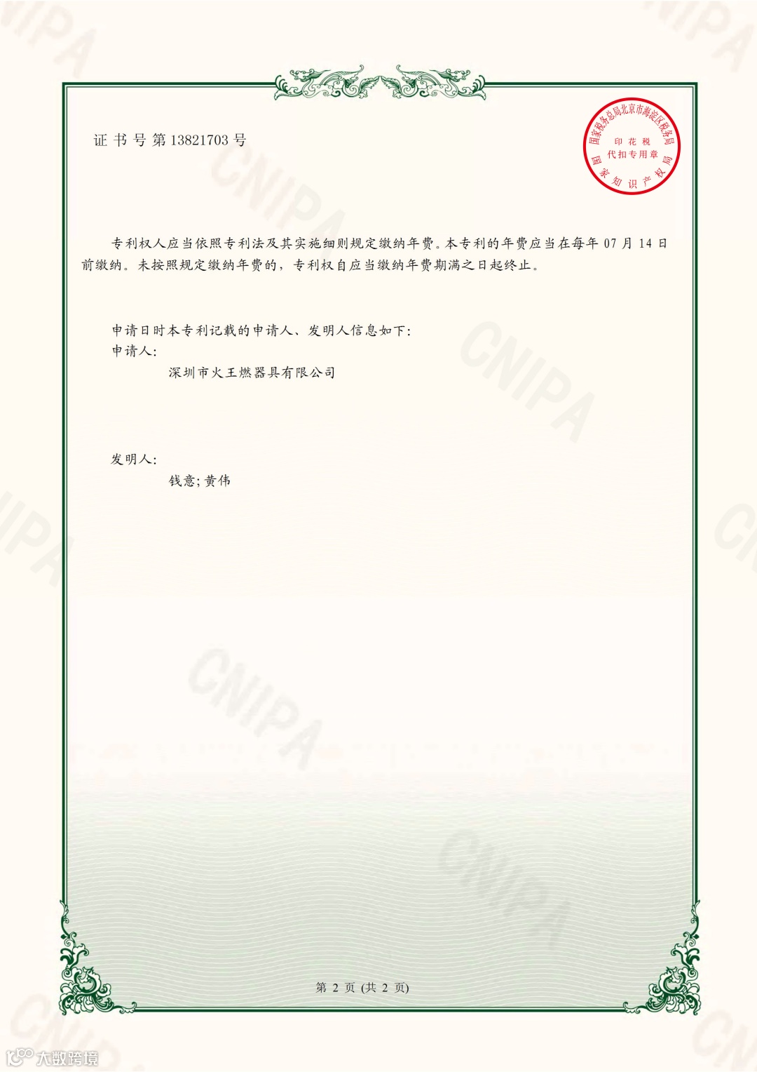 近期,火王又荣获多项发明专利及实用新型专利,为公司发明专利锦上添花,有效地保护了核心产品的知识产权。
