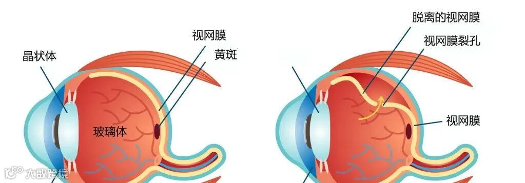 当近视度数增长,眼球前后径增大的时候,往往伴有视网膜变薄,进而会引起周边部视网膜的变性以及裂孔。同时,高度近视会伴有玻璃体的退变和液化,液化的玻璃体会顺着裂孔进入到视网膜下,造成视网膜的脱离现象。如果不及时控制,可能会造成视力永久性的丧失。