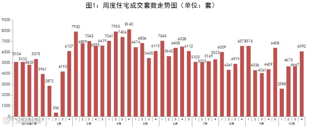上周每日成交量普遍在千套以上。新建商品住宅总成交量为6092套,整体回到调控前水平。10月前三周市场集中推盘,成交热度依然不减。