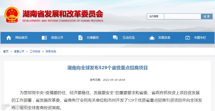 这是湖南省今年首次面向社会资本集中发布重点招商项目
