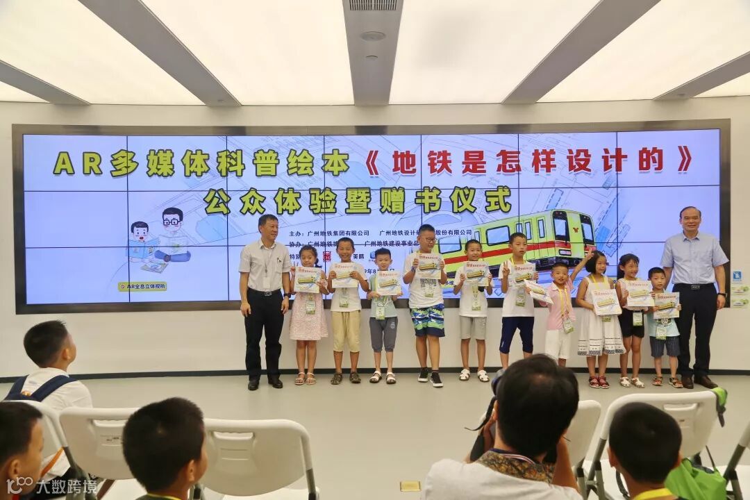 8月14日上午,广州地铁设计院在地铁博物馆科普课大厅举办了科普绘本的公众体验活动暨公益赠书仪式,来自来自广州图书馆、广州少年儿童图书馆、海珠区图书馆和东山实验小学的嘉宾和地铁新线建设工地的35名“小金雁”现场体验了一番这本神器的AR地铁科普绘本。