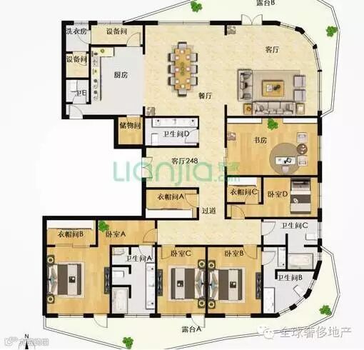 这个项目的特点就是露台大而且多