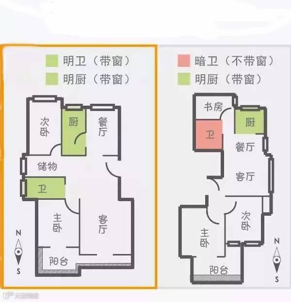 另外,厨卫如果有独立窗户最好,采光强。这样住久不会压抑。