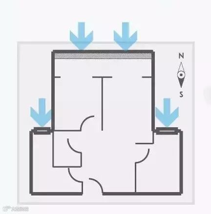 分析:窗户开在北侧为最差,只有北风入户,光照完全被挡。