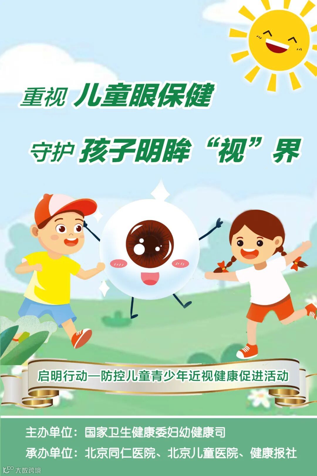 国家卫生健康委办公厅关于开展“启明行动”——防控儿童青少年近视健康促进活动的海报: