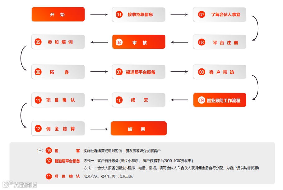 轻松干:每天闲时十分钟(建议早上2分钟,中午2分钟,晚上6分钟)。福道居平台将提供标准的推广资料,合伙人可自行通过短信、微信转发朋友圈轻松发展意向购房客户(或粉丝)并引导购房者在福道居小程序上登记报备;