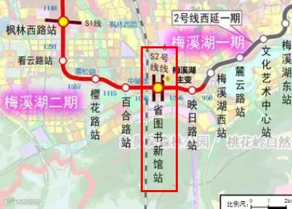 目前,各大地图上已经可以搜到关于梅二图书馆新馆(建设中)的精确位置,而二号线延长线与6号线也明确了“省图书新馆站”的地铁站名。