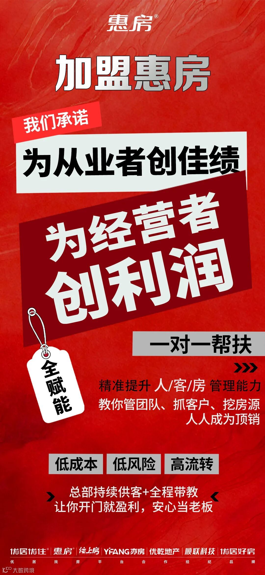 加入惠房,0元加盟费,0元开通58端口,超低管理费,真正实现低门槛无忧创业。