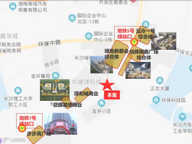 地铁口、超40万方的商业集群 项目周边由中南国际眼镜城、绿地新都会,云冷一号、中建璟和城、总部基地、步步高广场、旭辉即将开发的雨鑫广场限价10900元/平毛坯项目的综合体形成的商业集群,将会成为区域内的商业中心,吸引周边近10万人的消费人群。 中南国际眼镜城周边有旭辉雨鑫广场、绿地新都会、云冷一号、步步广场、总部基地等大型商业中心,组成超40万方商业集群,丰富的商业业态,满足业主楼下购物、娱乐休闲需求。 |