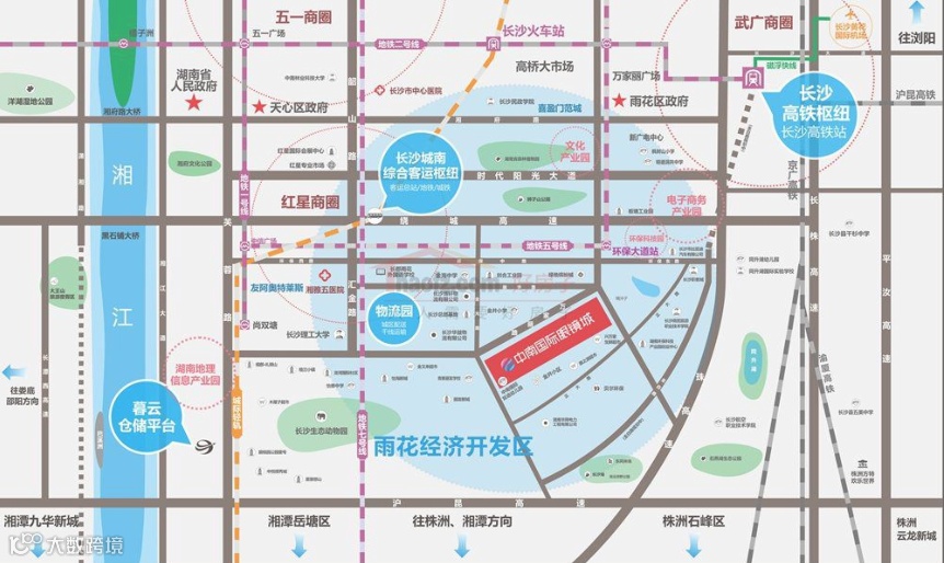 中南国际眼镜批发城所处雨花区环保科技园内,作为长沙最重要的新能源、高科技、汽车制造工业区城市副中心之一,承载了这几年长沙的主要发展方向。