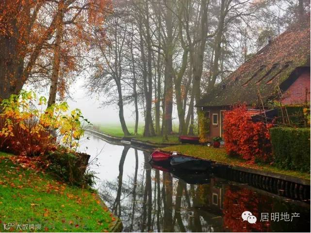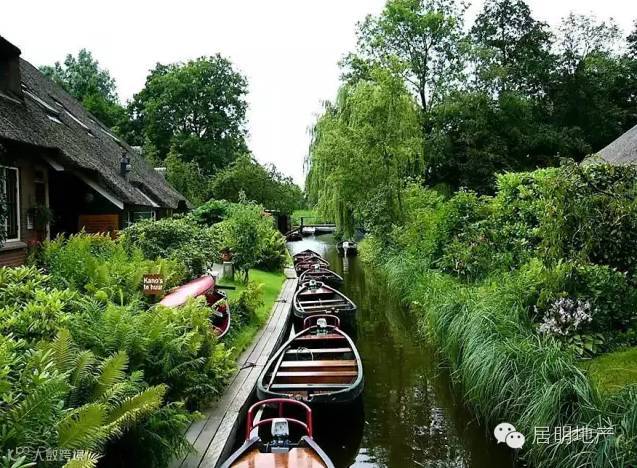 在荷兰有一个叫Giethoorn(羊角村)的村庄,境内没有任何的现代交通工具,取而代之的是一条条的运河。因为这里处处都是水波荡漾,树木房屋在水中相映成趣,所以这里也被称为“荷兰小威尼斯”。