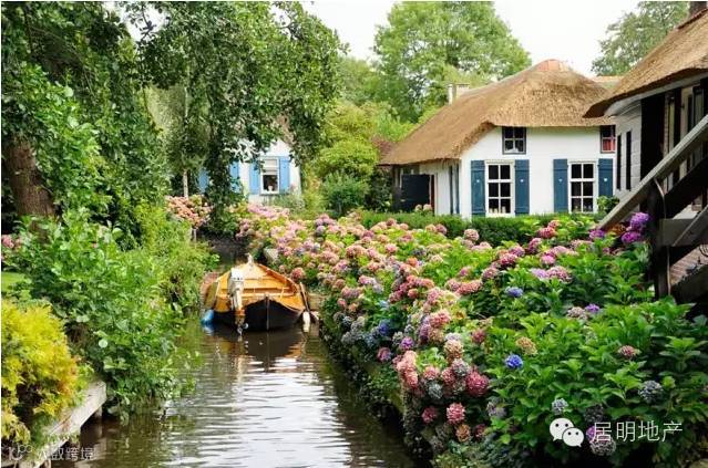 有人说这里像是精灵出没的村庄,芦苇屋顶,矮小的房子,流过家家户户的河流纵横阡陌。还有家家门前庭后种满了的美丽的绣球花。