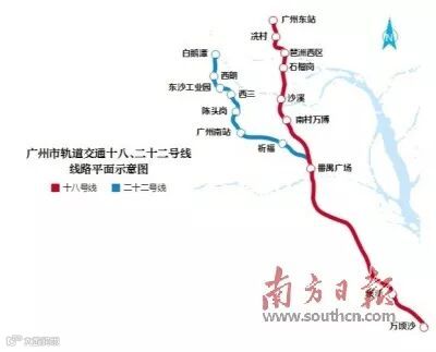 据地铁集团相关负责人介绍,十八和二十二号线是按同一标准设计、同步施工、“Y”形运营的两条快线,其中,万顷沙至番禺广场站区间为共用线。这也是目前全国在建地铁设计速度最快的线路,最快时速可达160公里。