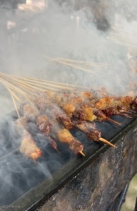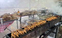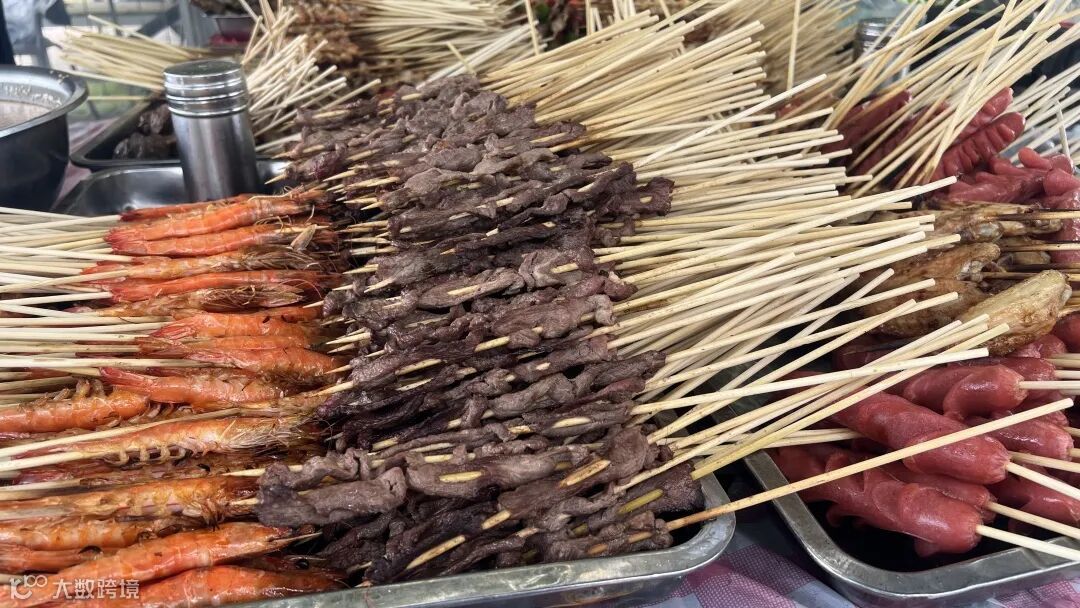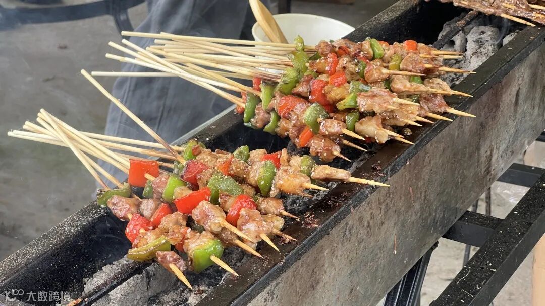 炭火跳跃,热浪翻滚,一块块鲜嫩多汁的食材在烤架上慢慢变得金黄诱人。
