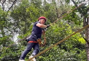 表彰仪式结束后,伙伴们踏上了“飞跃丛林”的探险之旅。“飞跃丛林”不仅是个人的挑战,更是团队的试炼场。