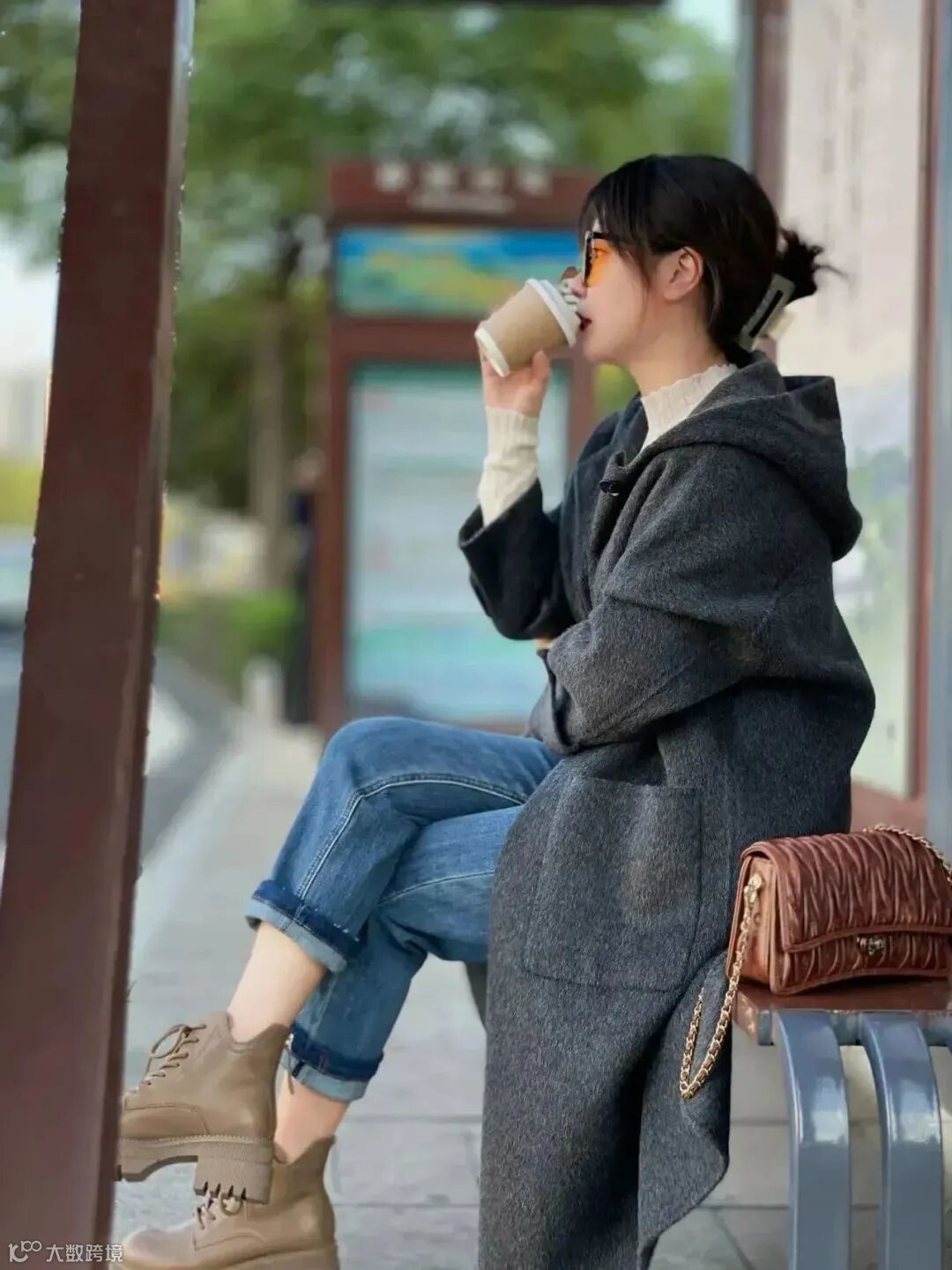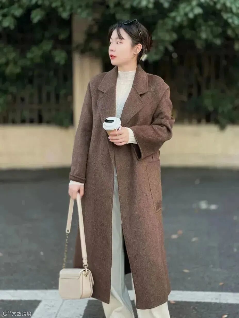 冬天怕膝盖冷的小仙女,首选长款大衣哦!搭配一条加绒加厚阔腿裤!气质女神上线!小个子姐妹想显高可以搭配光腿神器和短裙哦,穿上长靴,你也是氛围感爱豆!