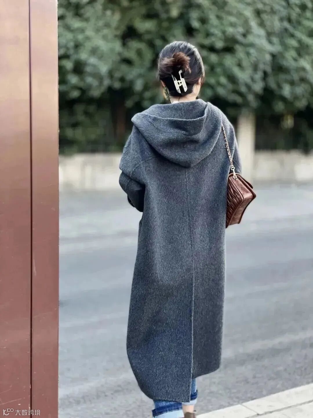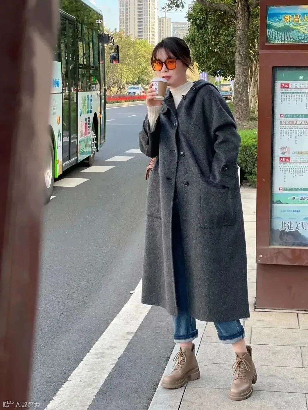 带帽大衣真得太减龄了!韩系小姐姐上线!深灰色色调百搭!宽松设计不挑身材!主要是很遮肉肉哦!微胖的小姐姐首选!