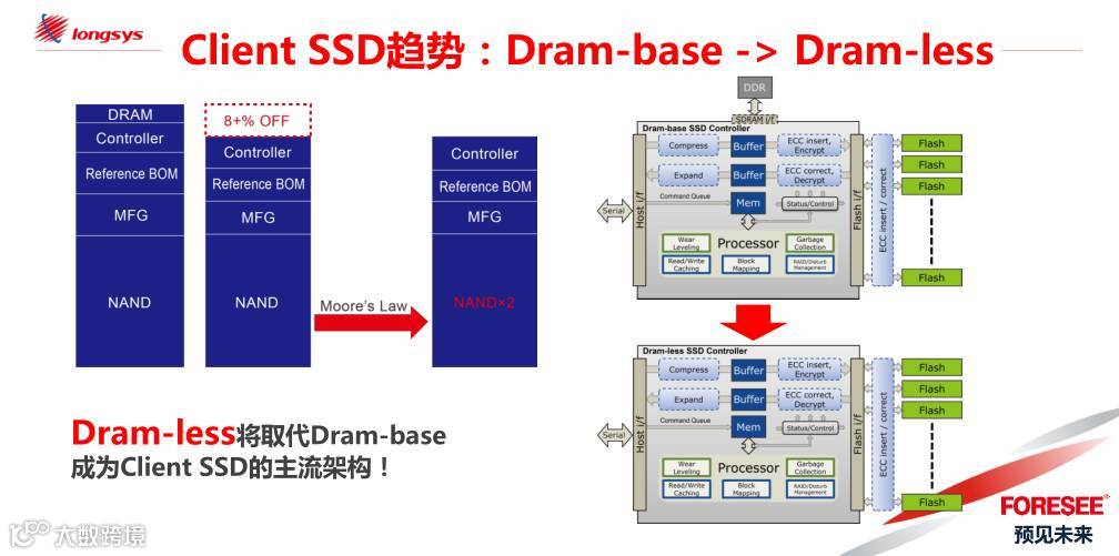 第六:最后,Dram-less将取代Dram-base成为SSD的主流架构。