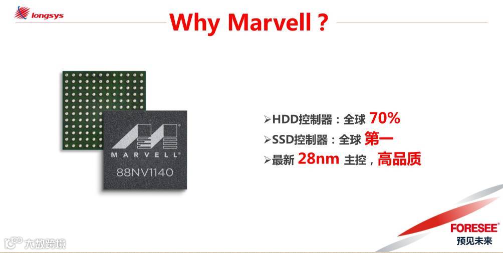 为什么要是和Marvell合作?当然是因为Marvell在存储控制器的绝对实力:HDD控制器全球份额70%,SSD控制器全球份额第一,已经成功实现28nm的主控芯片技术,联手Marvell,就意味着高品质与高水准。