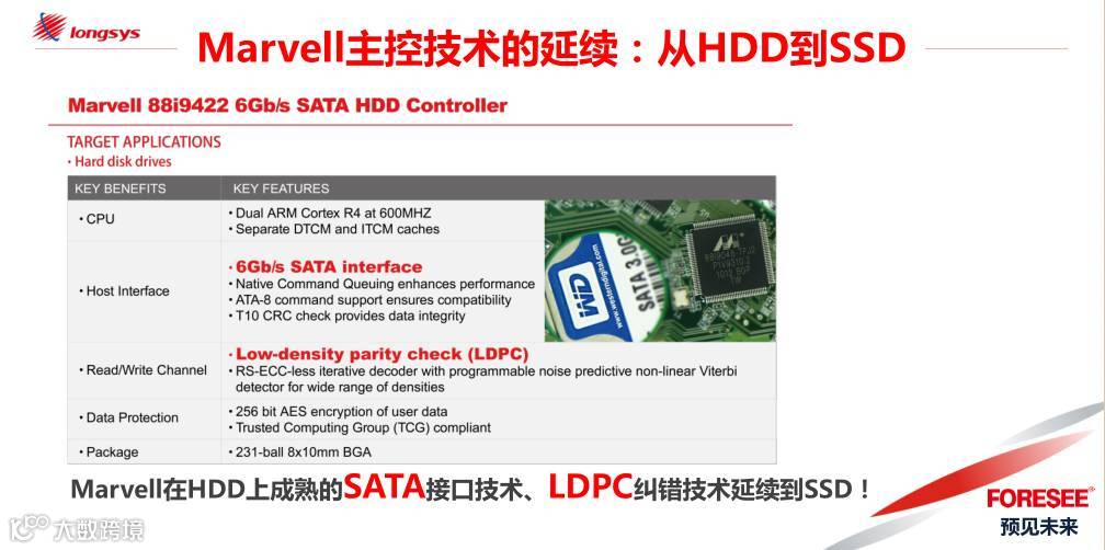 从技术角度来看,从HDD逐渐向SSD过渡发展的过程中,Marvell已经可以轻松驾驭成熟的SATA接口技术、LDPC纠错技术延续到SSD上,这一点将给产品兼容性带来保证。