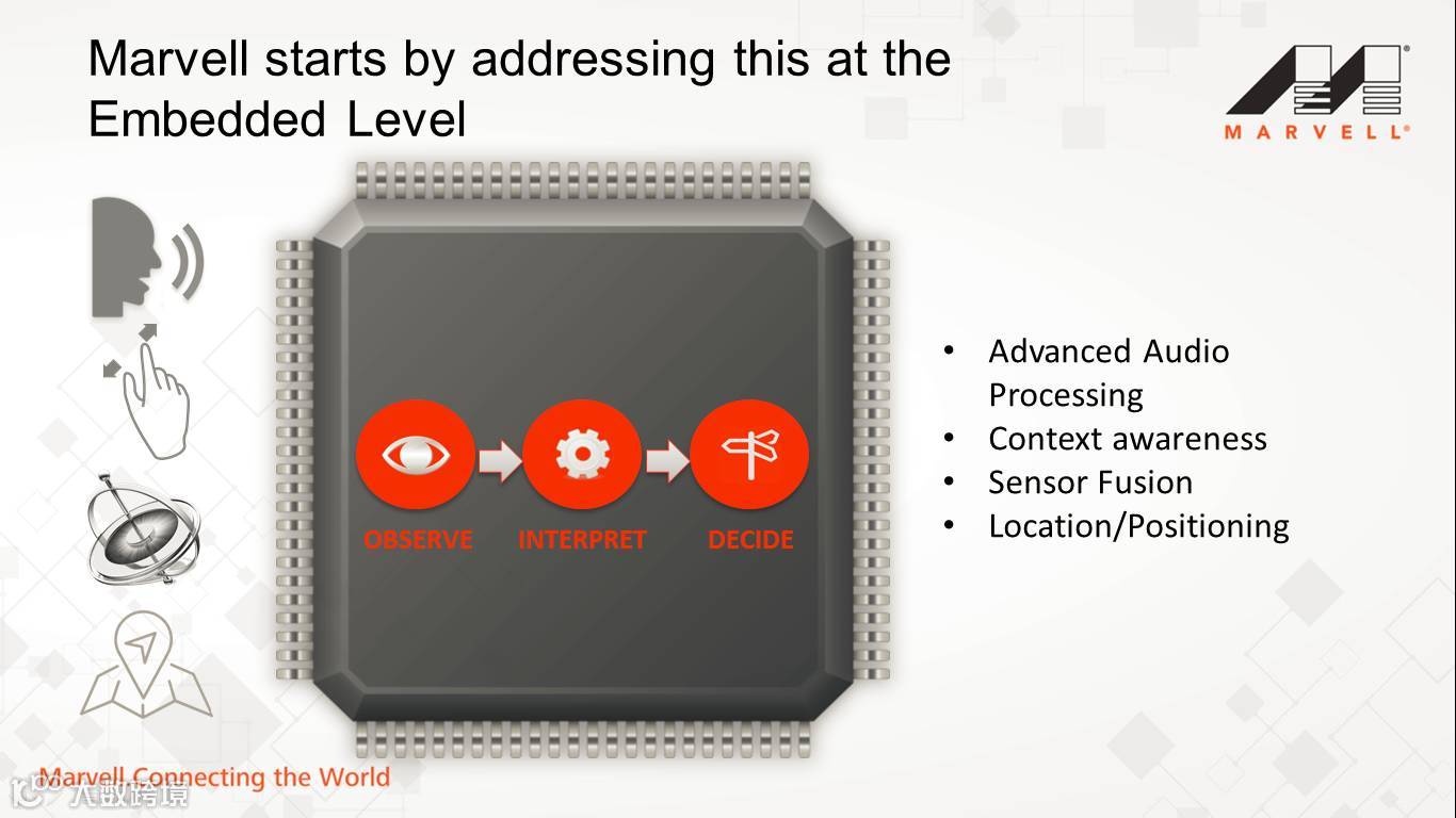 Marvell正在不断努力创新,在嵌入式层面一步一步帮助上述人工智能场景能够彻底实现。包括推出了基于Cortex—A内核系列的一体化解决方案,如无线和控制器集成在一起的处理器(微控制器)。同时也在平台上支持不同的操作系统,还支持各种各样的协议,即希望能够提供各种各样非常具有包容性的芯片环境,让所有的用户都可以来设计他们的产品。
