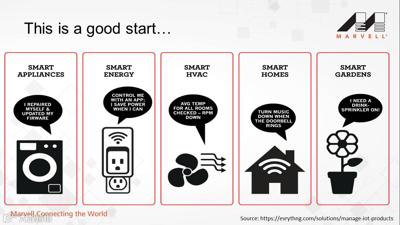 Marvell有很多的解决方案可以将设备和互联网进行连接,同时给这些产品一些感知度。可是仅仅联网就够了吗?用APP开关、控制一个设备就够了吗?将App和云端联系起来就可以了吗?Philips演讲时向现场嘉宾连续抛出一系列问题。