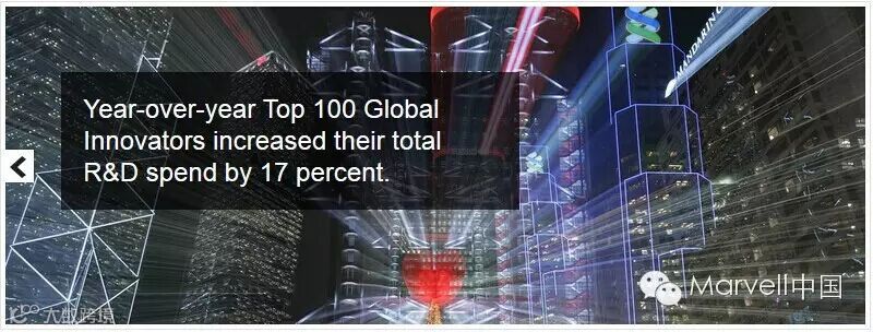 “全球百强创新机构”的研发投入激增。百强企业在2013年的研发投入共2080亿美元,是标普500强公司的4倍,“全球百强创新机构”的年度研发投入增长了近17%。