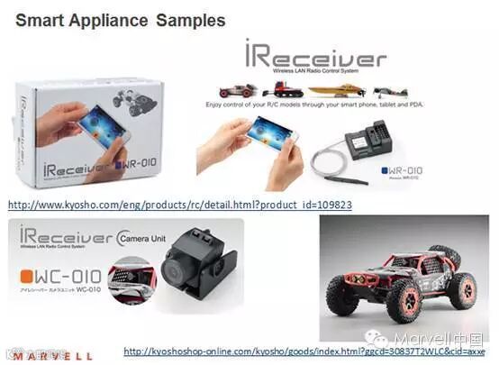 在本次论坛上,成少飞还分享了若干Marvell与国际国内客户合作的有趣创新案例,例如美国惠尔浦推出的智能家用电器、日本一家玩具企业推出的手机WiFi遥控玩具汽车(带摄像头视频信息采集)、中国智能家居领导厂商Broadlink(杭州古北)的智能家居环境感知和控制系统等。