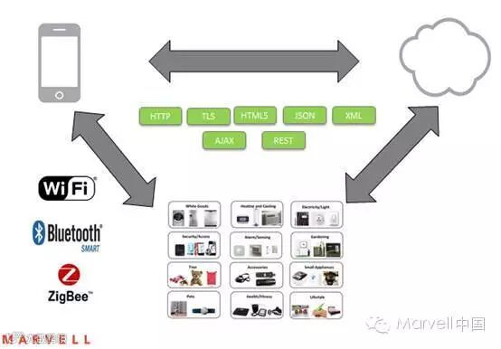 在IoT的智能家居领域,WiFi会是个热点,但它并是不无所不能,在有些场合并不合适。WiFi虽然可以支持高带宽的应用,但相对成本会比较高,功耗也会比较高。因此可以看到低功耗的蓝牙技术重新崛起,在各种智能硬件尤其是可穿戴设备中可处处见其身影,对WiFi造成一定竞争,但更多情况下是有益补充。Marvell 的MB300蓝牙无线控制器解决方案瞄准遥控、无线扬声器、汽车、游戏手柄、立体声耳机、医疗保健、可穿戴及更多IoT应用领域,并已被多家厂商采用。