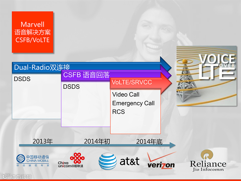 针对另一个热门话题——VoLTE,Marvell将在今年年底至明年年初推出商用产品。除了中国移动,包括中国电信、以及国外的运营商Verizon、印度的Reliance以及AT&T等都将有合作。