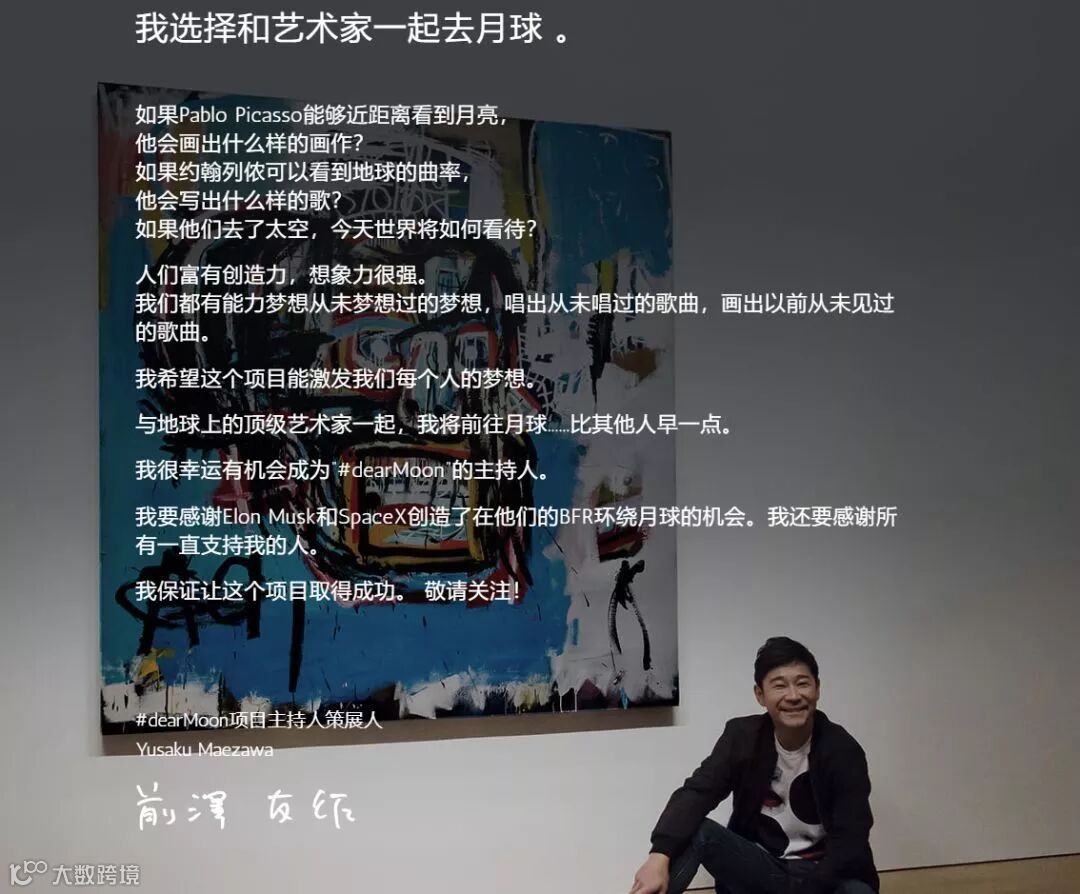 有趣的是,前泽友作不仅自己去,他还要带着艺术家们一起去月球。