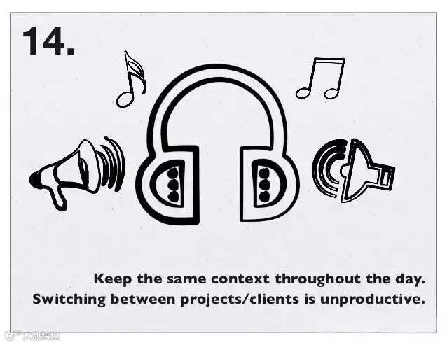 14、一整天保持相同的工作环境。在项目/客户之间切换,会效率低。