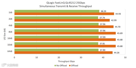 25G 网卡传输性能远远超过10G网卡 - 在16KB以下的数据包测试中,差距尤为明显。数据包大小为16KB时,差距是3倍;而数据包为1KB时,传输性能差距超过20倍!