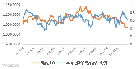 商品策略。上周工业品分化,农产品会叫。和上周相比,商品市场具有趋势的品种比例回落。近段时间来农产品持续走强,对商品趋势策略有提振。不过就工业品而言,由于中外经济周期的错位以及国内较弱的库存周期,商品内部分化,长期看整体趋势性可能并不强。