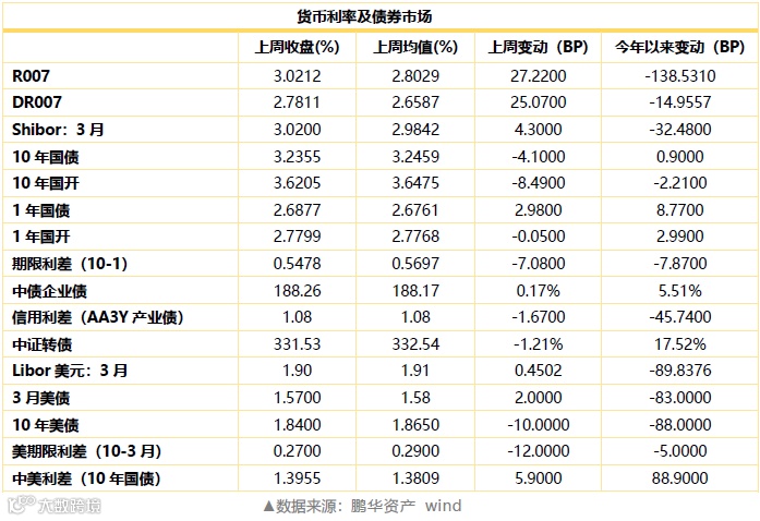 注:货币利率(R007、DR007、贴现利率、Shibor、Libor利率等)变动数据采用周均值,债券指数、债券收益率变动采用收盘价。