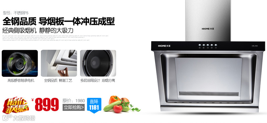 NO2:油烟机 不锈钢8021 粉丝团购价 899元